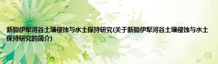 本文关于新疆伊犁河谷土壤侵蚀与水土保持研究的简介就讲解完毕,希望对大家有所帮助。