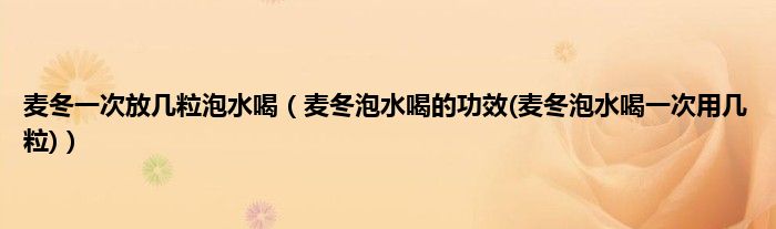 大家好,小科来为大家解答以上问题。麦冬一次放几粒泡水喝,麦冬泡水喝的功效(麦冬泡水喝一次用几粒)很多人还不知道,现在让我们一起来看看吧!