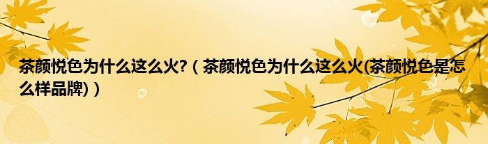 大家好,小科来为大家解答以上问题。茶颜悦色为什么这么火?,茶颜悦色为什么这么火(茶颜悦色是怎么样品牌)很多人还不知道,现在让我们一起来看看吧!