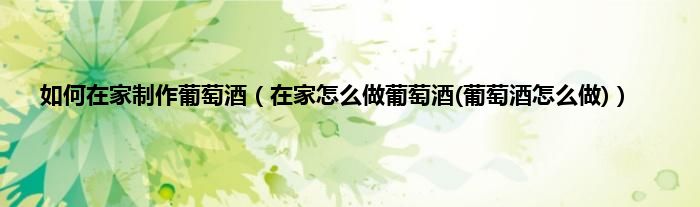 在家里酿酒,你需要准备一些新鲜的葡萄,白糖,酵母粉。不烂、颜色深、完全成熟、颗粒小的葡萄更好。然后压碎它们,果粒就被压碎了。不要压迫葡萄籽,放在容器里也不能太慢。12小时左右就可以开始发酵,每天早晚需要用干净的工具搅拌。发酵温度不能超过30度。大概一个星期后,就差不多了。发酵中无气泡时,发酵结束后可将酒滤出,装入密封瓶中,避光保存。瓶盖不需要拧的太紧,大概一两周之后会有沉淀。这时候可以分离出来,放入其他容器中,试着灌满,拧紧瓶盖,好喝的酒就做好了。