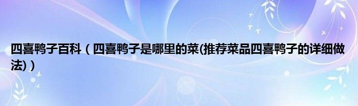 大家好,小科来为大家解答以上问题。四喜鸭子百科,四喜鸭子是哪里的菜(推荐菜品四喜鸭子的详细做法)很多人还不知道,现在让我们一起来看看吧!