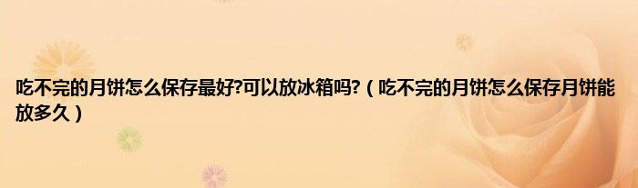 大家好,小科来为大家解答以上问题。吃不完的月饼怎么保存最好?可以放冰箱吗?,吃不完的月饼怎么保存月饼能放多久很多人还不知道,现在让我们一起来看看吧!