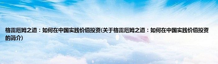 大家好,格雷厄姆之道:如何在中国实践价值投资,关于格雷厄姆之道:如何在中国实践价值投资的简介很多人还不知道,现在让我们一起来看看吧!