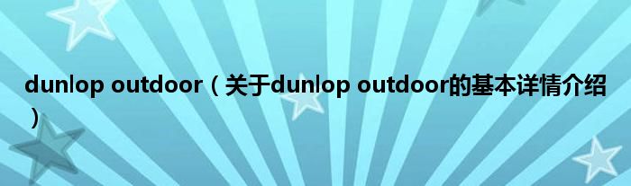 本文关于dunlop outdoor的基本详情介绍就讲解完毕,希望对大家有所帮助。