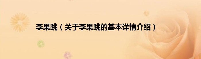 本文关于李果跳的基本详情介绍就讲解完毕,希望对大家有所帮助。