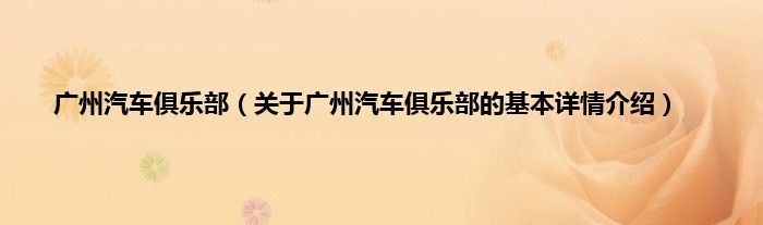 本文关于广州汽车俱乐部的基本详情介绍就讲解完毕,希望对大家有所帮助。