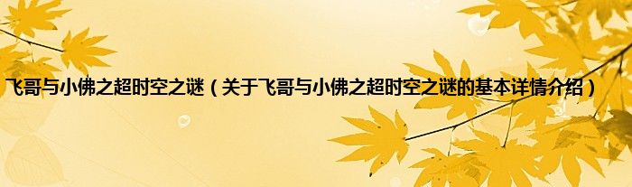 本文关于飞哥与小佛之超时空之谜的基本详情介绍就讲解完毕,希望对大家有所帮助。