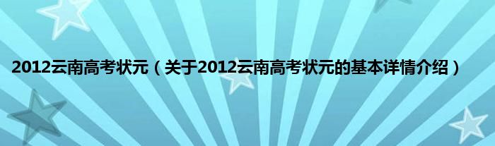 2012云南高考状元(关于2012云南高考状元的基本详情介绍)