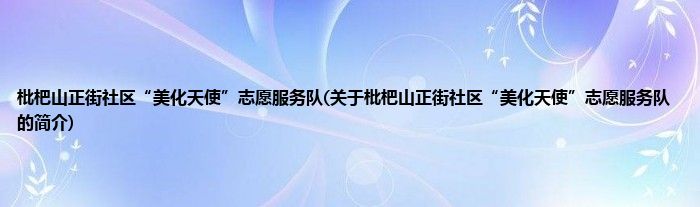 枇杷山正街社区“美化天使”志愿服务队(关于枇杷山正街社区“美化天使”志愿服务队的简介)