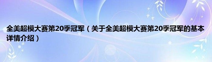 全美超模大赛第20季冠军(关于全美超模大赛第20季冠军的基本详情介绍)