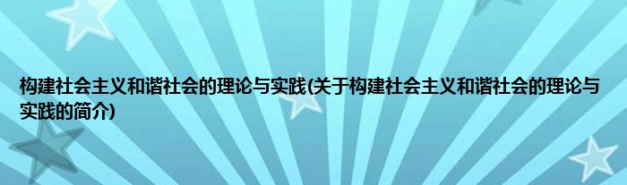大家好,构建社会主义和谐社会的理论与实践,关于构建社会主义和谐社会的理论与实践的简介很多人还不知道,现在让我们一起来看看吧!