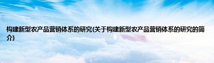 大家好,构建新型农产品营销体系的研究,关于构建新型农产品营销体系的研究的简介很多人还不知道,现在让我们一起来看看吧!