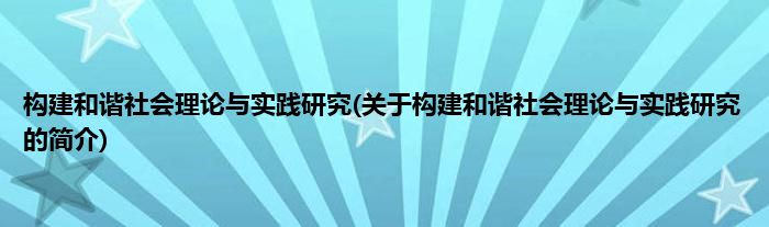 本文关于构建和谐社会理论与实践研究的简介就讲解完毕,希望对大家有所帮助。
