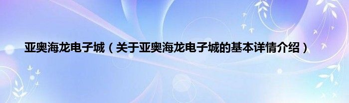 本文关于亚奥海龙电子城的基本详情介绍就讲解完毕,希望对大家有所帮助。