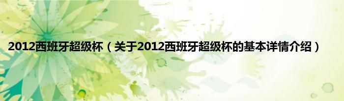 本文关于2012西班牙超级杯的基本详情介绍就讲解完毕,希望对大家有所帮助。