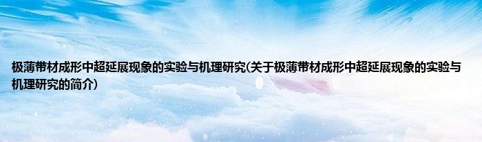 本文关于极薄带材成形中超延展现象的实验与机理研究的简介就讲解完毕,希望对大家有所帮助。
