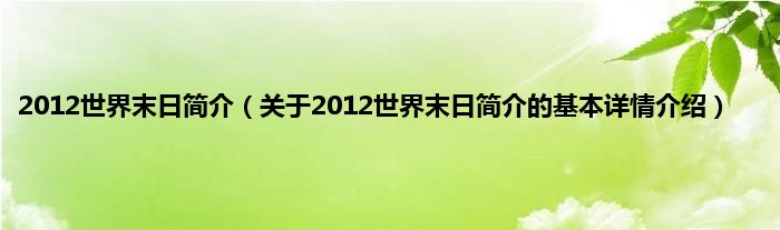 本文关于2012世界末日简介的基本详情介绍就讲解完毕,希望对大家有所帮助。