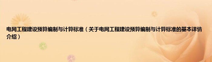 电网工程建设预算编制与计算标准(关于电网工程建设预算编制与计算标准的基本详情介绍)