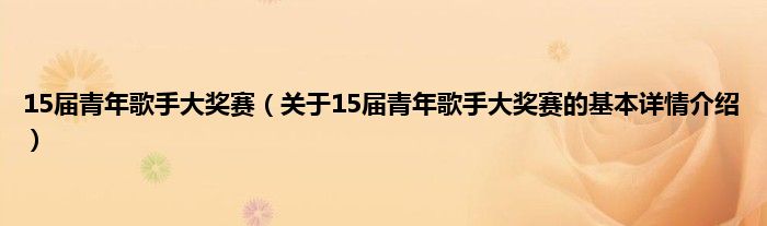 本文关于15届青年歌手大奖赛的基本详情介绍就讲解完毕,希望对大家有所帮助。