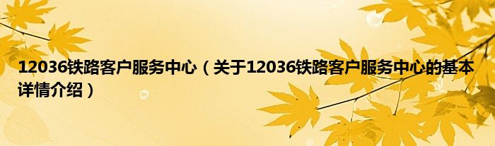 本文关于12036铁路客户服务中心的基本详情介绍就讲解完毕,希望对大家有所帮助。