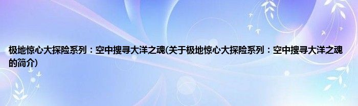 本文关于极地惊心大探险系列:空中搜寻大洋之魂的简介就讲解完毕,希望对大家有所帮助。
