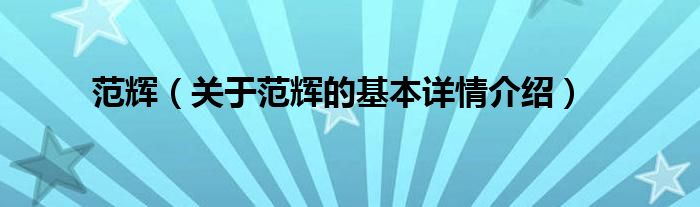 本文关于范辉的基本详情介绍就讲解完毕,希望对大家有所帮助。