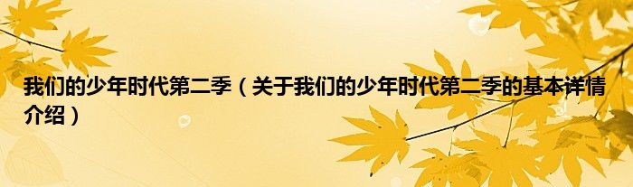 本文关于我们的少年时代第二季的基本详情介绍就讲解完毕,希望对大家有所帮助。