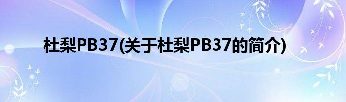 杜梨PB37(关于杜梨PB37的简介)