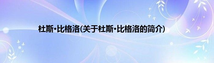 本文关于杜斯·比格洛的简介就讲解完毕,希望对大家有所帮助。