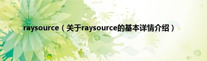 本文关于raysource的基本详情介绍就讲解完毕,希望对大家有所帮助。