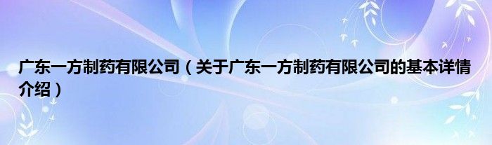 本文关于广东一方制药有限公司的基本详情介绍就讲解完毕,希望对大家有所帮助。