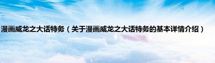 本文关于漫画威龙之大话特务的基本详情介绍就讲解完毕,希望对大家有所帮助。