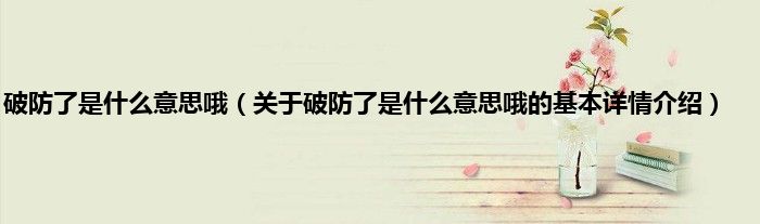 本文关于破防了是什么意思哦的基本详情介绍就讲解完毕,希望对大家有所帮助。