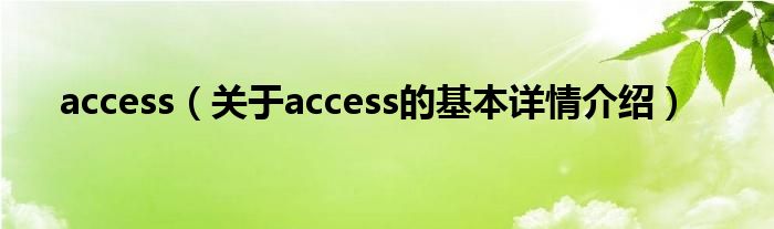 本文关于access的基本详情介绍就讲解完毕,希望对大家有所帮助。