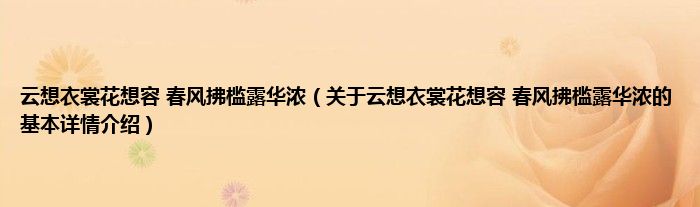 本文关于云想衣裳花想容 春风拂槛露华浓的基本详情介绍就讲解完毕,希望对大家有所帮助。