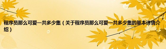 本文关于程序员那么可爱一共多少集的基本详情介绍就讲解完毕,希望对大家有所帮助。