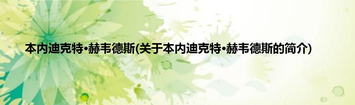 大家好,本内迪克特·赫韦德斯,关于本内迪克特·赫韦德斯的简介很多人还不知道,现在让我们一起来看看吧!