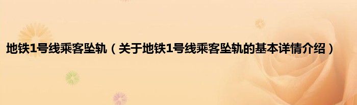 本文关于地铁1号线乘客坠轨的基本详情介绍就讲解完毕,希望对大家有所帮助。