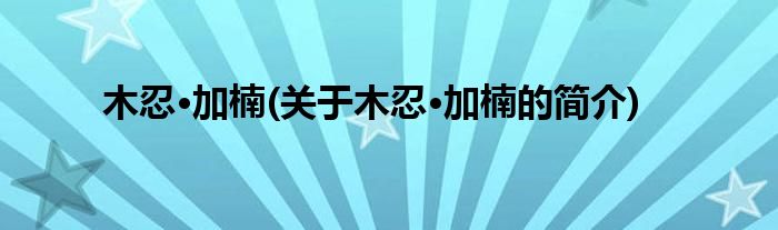 本文关于木忍·加楠的简介就讲解完毕,希望对大家有所帮助。