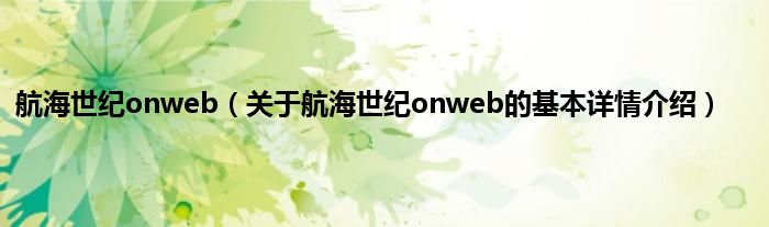 本文关于航海世纪onweb的基本详情介绍就讲解完毕,希望对大家有所帮助。