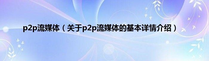 本文关于p2p流媒体的基本详情介绍就讲解完毕,希望对大家有所帮助。