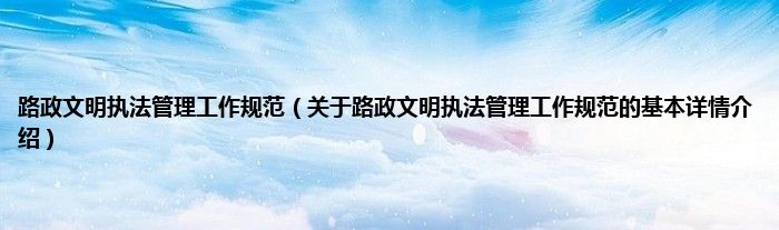 本文关于路政文明执法管理工作规范的基本详情介绍就讲解完毕,希望对大家有所帮助。