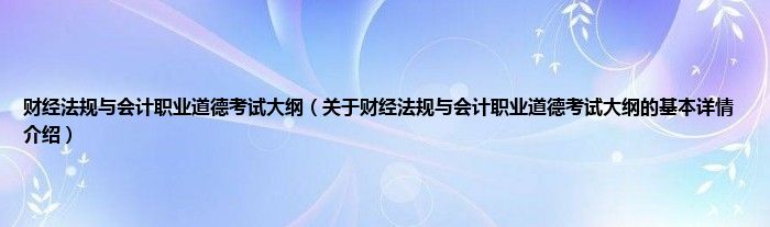 本文关于财经法规与会计职业道德考试大纲的基本详情介绍就讲解完毕,希望对大家有所帮助。