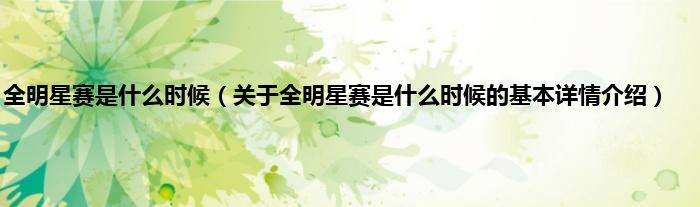 本文关于全明星赛是什么时候的基本详情介绍就讲解完毕,希望对大家有所帮助。