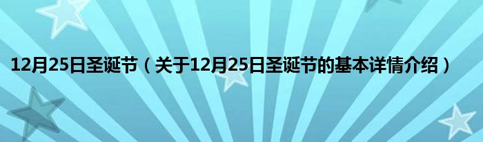 本文关于12月25日圣诞节的基本详情介绍就讲解完毕,希望对大家有所帮助。