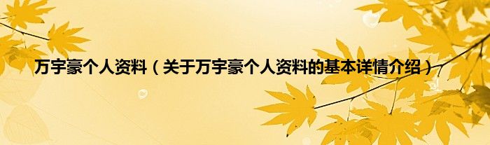 万宇豪个人资料(关于万宇豪个人资料的基本详情介绍)