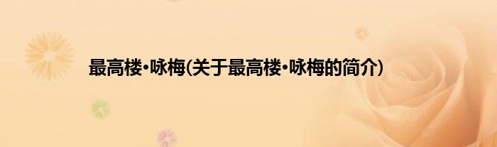 大家好,最高楼·咏梅,关于最高楼·咏梅的简介很多人还不知道,现在让我们一起来看看吧!