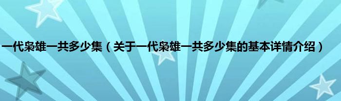 一代枭雄一共多少集(关于一代枭雄一共多少集的基本详情介绍)