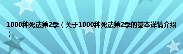 1000种死法第2季(关于1000种死法第2季的基本详情介绍)
