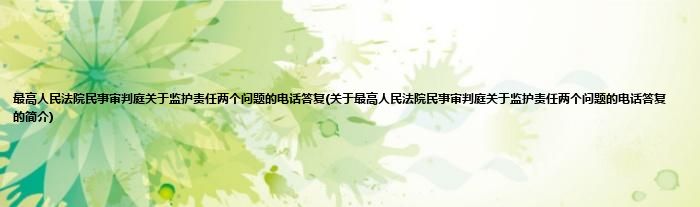 本文关于最高人民法院民事审判庭关于监护责任两个问题的电话答复的简介就讲解完毕,希望对大家有所帮助。